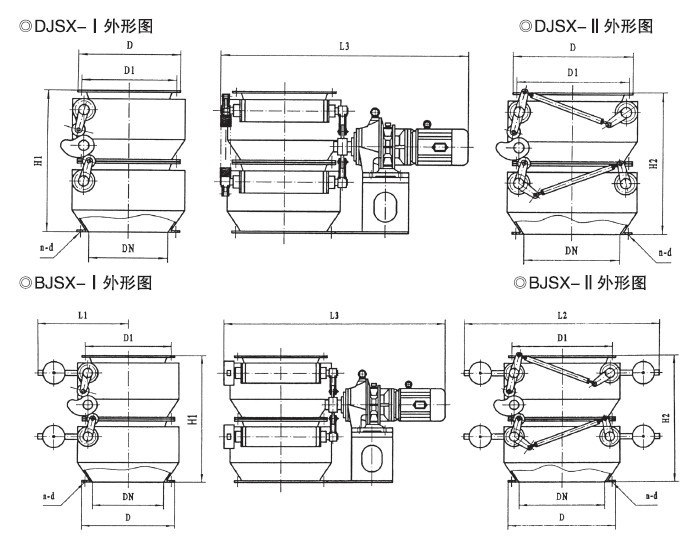 鎖氣翻板卸灰閥為上下交替開閉,自動復(fù)位機(jī)構(gòu)。分為:z為重錘自動復(fù)位機(jī)構(gòu),具有運(yùn)轉(zhuǎn)平穩(wěn)、節(jié)能,卸灰量大、小可調(diào),卸灰、鎖氣可靠之功能。C為吊錘自動復(fù)位機(jī)構(gòu),具有占地面積省、節(jié)能,卸灰調(diào)節(jié)方便,卸灰、鎖氣可靠之功能。B為凸輪、連桿傳動,重量自動復(fù)位機(jī)構(gòu);D為凸輪連桿傳動,彈簧自動復(fù)位機(jī)構(gòu),結(jié)構(gòu)緊湊、設(shè)計(jì)合理、運(yùn)轉(zhuǎn)平穩(wěn),卸灰、鎖氣可靠。是各種無粘度的固體粉料,小于Φ10mm的顆粒料,晶體料,團(tuán)狀料,給、卸料工況的理想設(shè)備。Ⅰ型為單板卸料,Ⅱ型為雙板卸料。