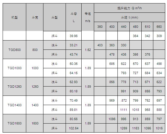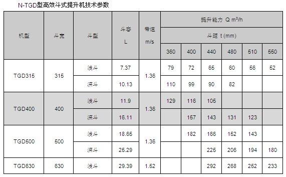 TGD提升機(jī)牽引構(gòu)件采用高強(qiáng)度鋼絲繩芯橡膠帶,克服了鏈條嚙合驅(qū)動(dòng)產(chǎn)生動(dòng)載荷,較鏈條更輕便,工作平穩(wěn),能以更快的運(yùn)動(dòng)速度達(dá)到更高的生產(chǎn)率,在同樣的生產(chǎn)條件下,膠帶因其工作速度高和自重較輕,可使物料線載荷和牽引構(gòu)件的線載荷減少,從而減少整機(jī)的尺寸和自重。同時(shí)由于膠帶具有良好彈性和柔韌性,在料斗進(jìn)行裝載時(shí)有減振作用,由于采用了高強(qiáng)度鋼絲繩芯膠帶,可使提升機(jī)的提升高度和輸送量大為提高,因而該產(chǎn)品具有良好的發(fā)展前景。