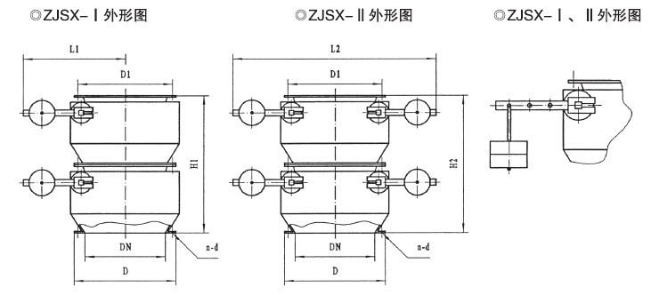 鎖氣翻板卸灰閥為上下交替開閉,自動復(fù)位機(jī)構(gòu)。分為:z為重錘自動復(fù)位機(jī)構(gòu),具有運(yùn)轉(zhuǎn)平穩(wěn)、節(jié)能,卸灰量大、小可調(diào),卸灰、鎖氣可靠之功能。C為吊錘自動復(fù)位機(jī)構(gòu),具有占地面積省、節(jié)能,卸灰調(diào)節(jié)方便,卸灰、鎖氣可靠之功能。B為凸輪、連桿傳動,重量自動復(fù)位機(jī)構(gòu);D為凸輪連桿傳動,彈簧自動復(fù)位機(jī)構(gòu),結(jié)構(gòu)緊湊、設(shè)計(jì)合理、運(yùn)轉(zhuǎn)平穩(wěn),卸灰、鎖氣可靠。是各種無粘度的固體粉料,小于Φ10mm的顆粒料,晶體料,團(tuán)狀料,給、卸料工況的理想設(shè)備。Ⅰ型為單板卸料,Ⅱ型為雙板卸料。