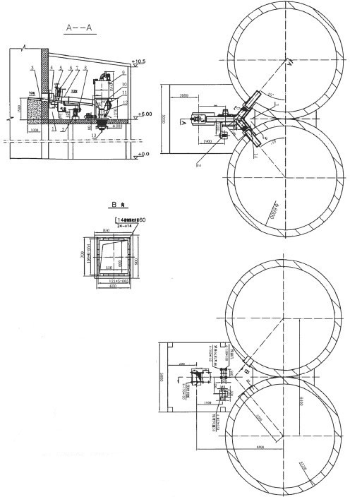 6、其不同直徑的均化庫,其三通槽角度不同,可由實(shí)際情況定。
